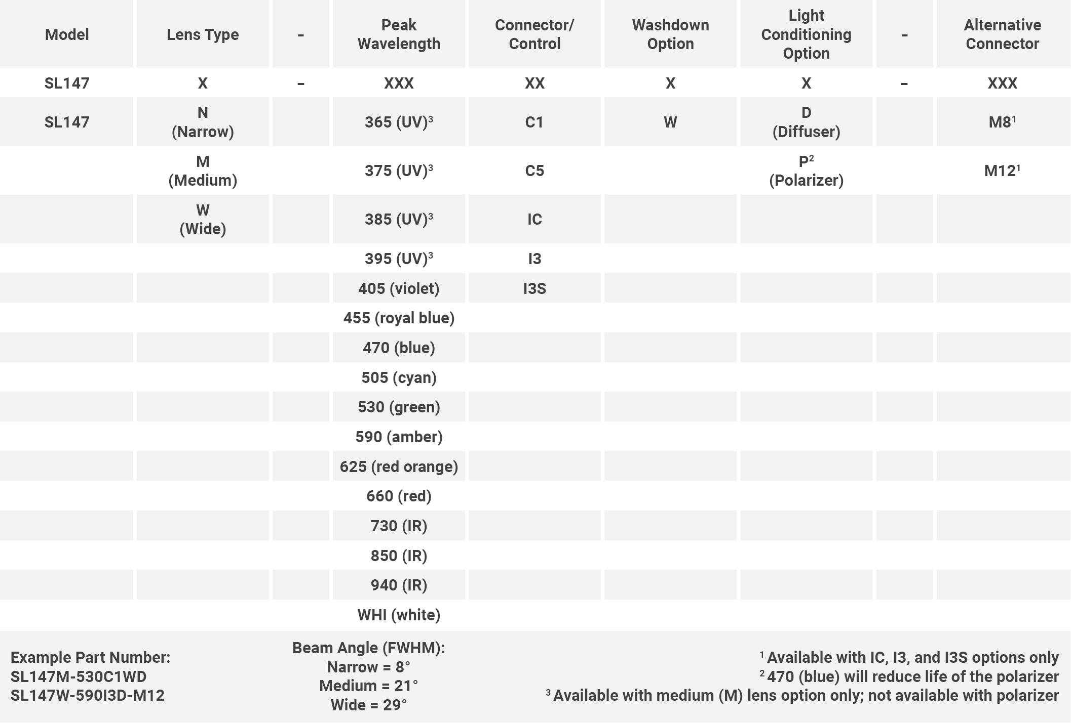Our SL147 2×2 spot light is ideal for long working distances and comes available in a variety of wavelengths.